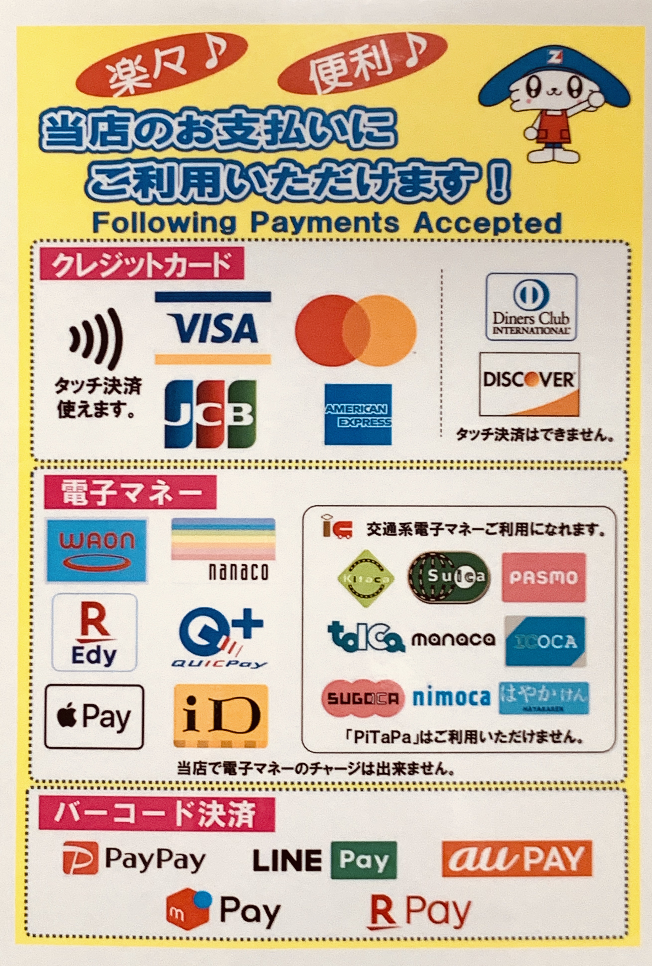電子マネー取り扱い