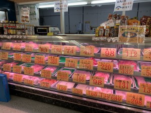 260円弁当を中心のい惣菜の品揃えが豊富です。目玉商品として馬刺・馬肉をお安く提供しています。